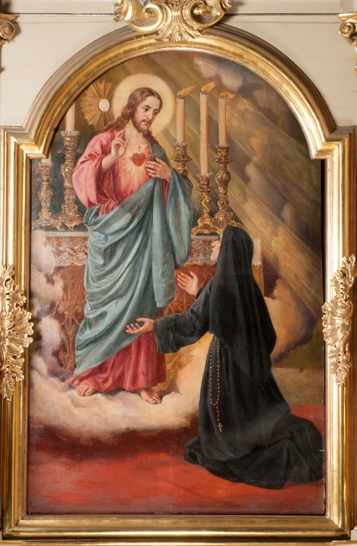 Obraz przedstawiający wizję św. Małgorzaty Marii Alacoque został namalowany przez Antoniego Zembaczyńskiego w 1910 roku.